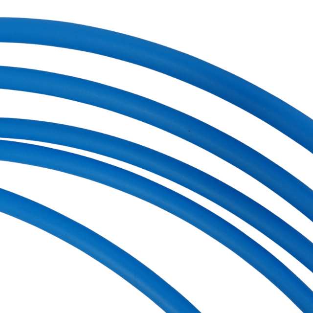 Este hula hoop está fabricado en manguera de polietileno (PE) de densidad media-alta color azul, con brillos sútiles integrados en el material.